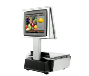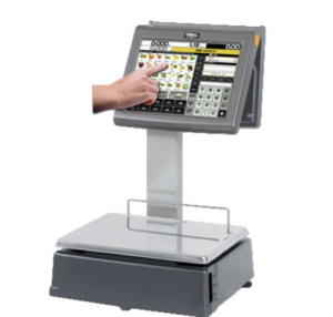 Balanza liquidadora Dibal de altas prestaciones, con impresora de etiquetas, pantalla tactil en el lado vendedor y display publicitario en el lado del comprador, 20 vendedores, hasta 10000 productos y 999 teclas directas para productos, interconexion de 16 balanzas, formatos de impresion programables para ticket y etiqueta, cambio facil de papel, impresion de logos, codigo de barras EAN 13, programacion y configuracion por PC. Doble rango medicion 30kg y 15kg.