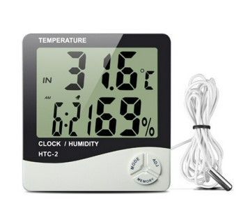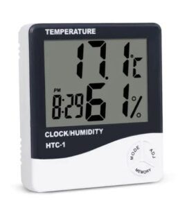 Termohigrómetro marca TFA, con pantalla LCD, muestra temperatura y humedad, pueden mostrar los valores más bajos y más altos, con unidades de temperatura °C / °F y función máxima de una memoria de máxima y mínima.